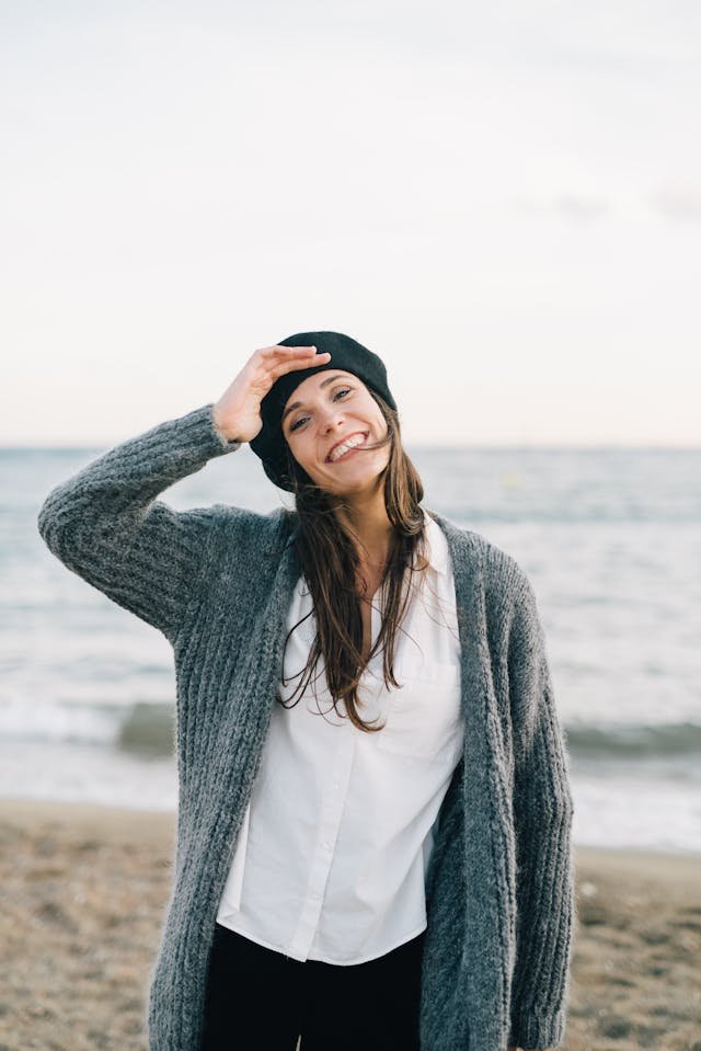 The cardigan look is perfect for hosting Thanksgiving at home.